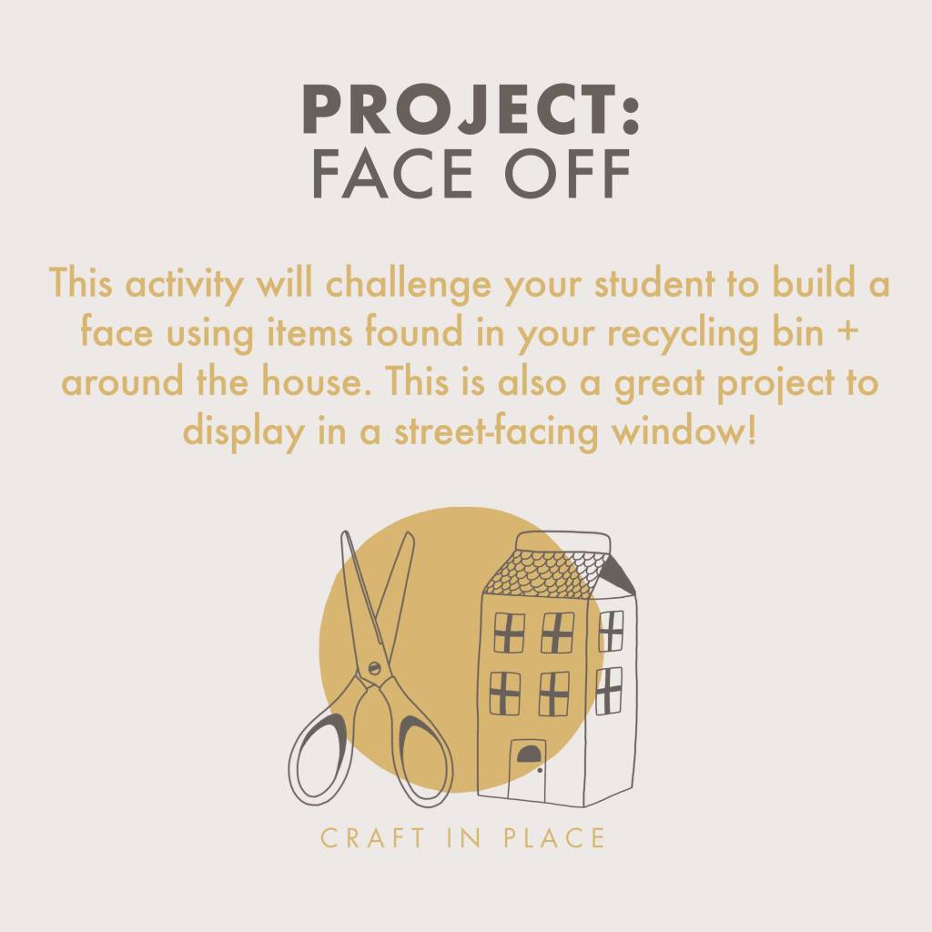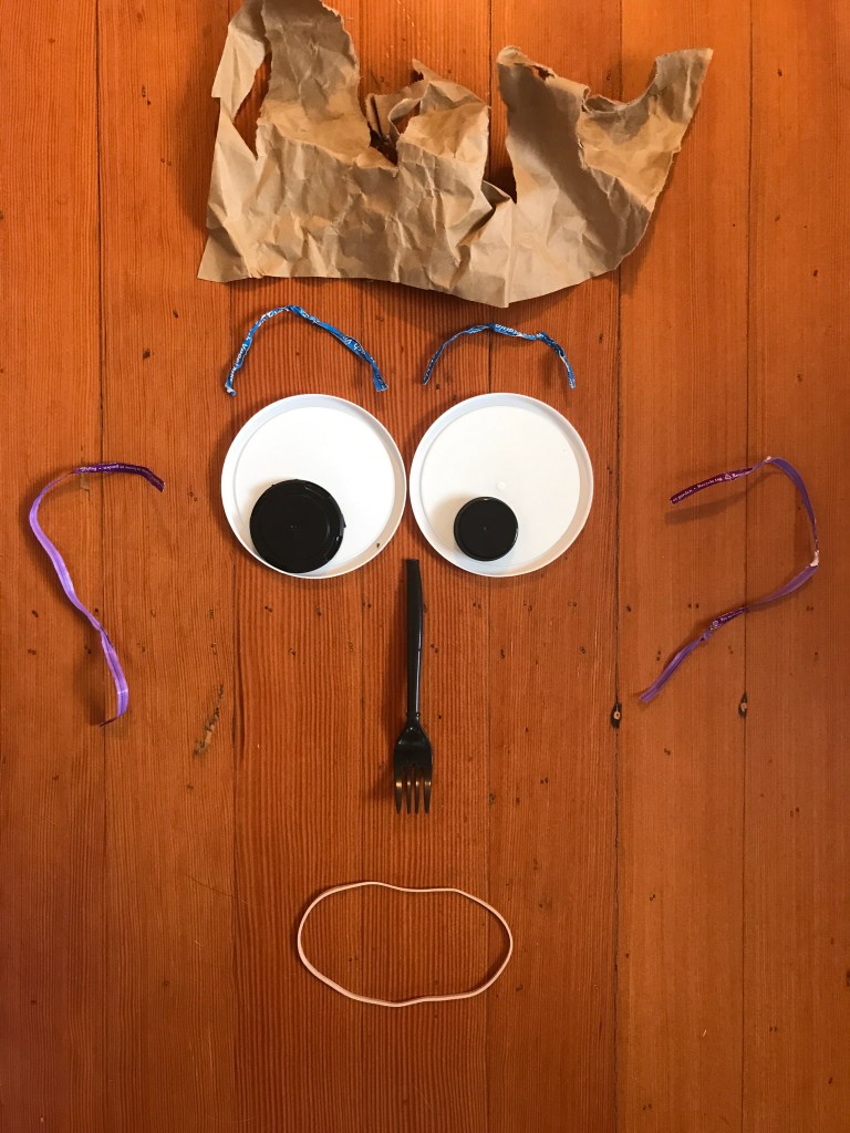 Using Everyday materials to talk about and process emotions can be a useful tool for both adults and young people. Face Off invites you to explore your feelings and emotions by building faces with the objects you have around the house. Photographs above (with the exception of one) were created and taken by Kayvon (5 years old) and Tobie ( 5.5 years old).