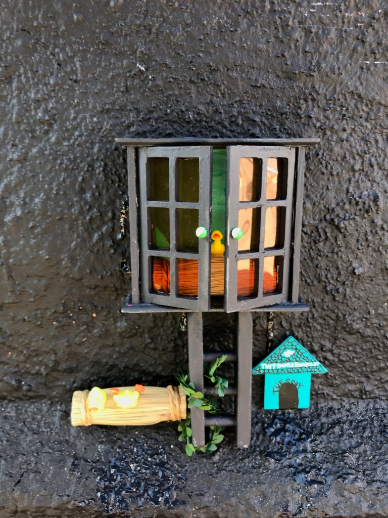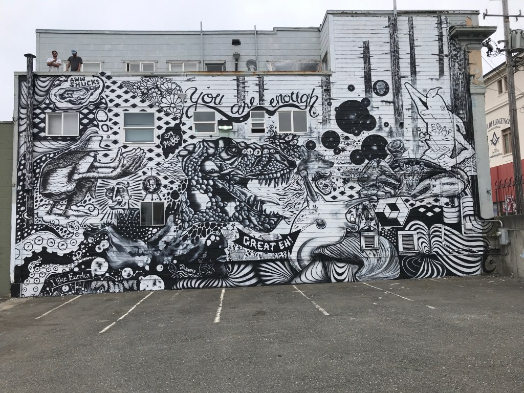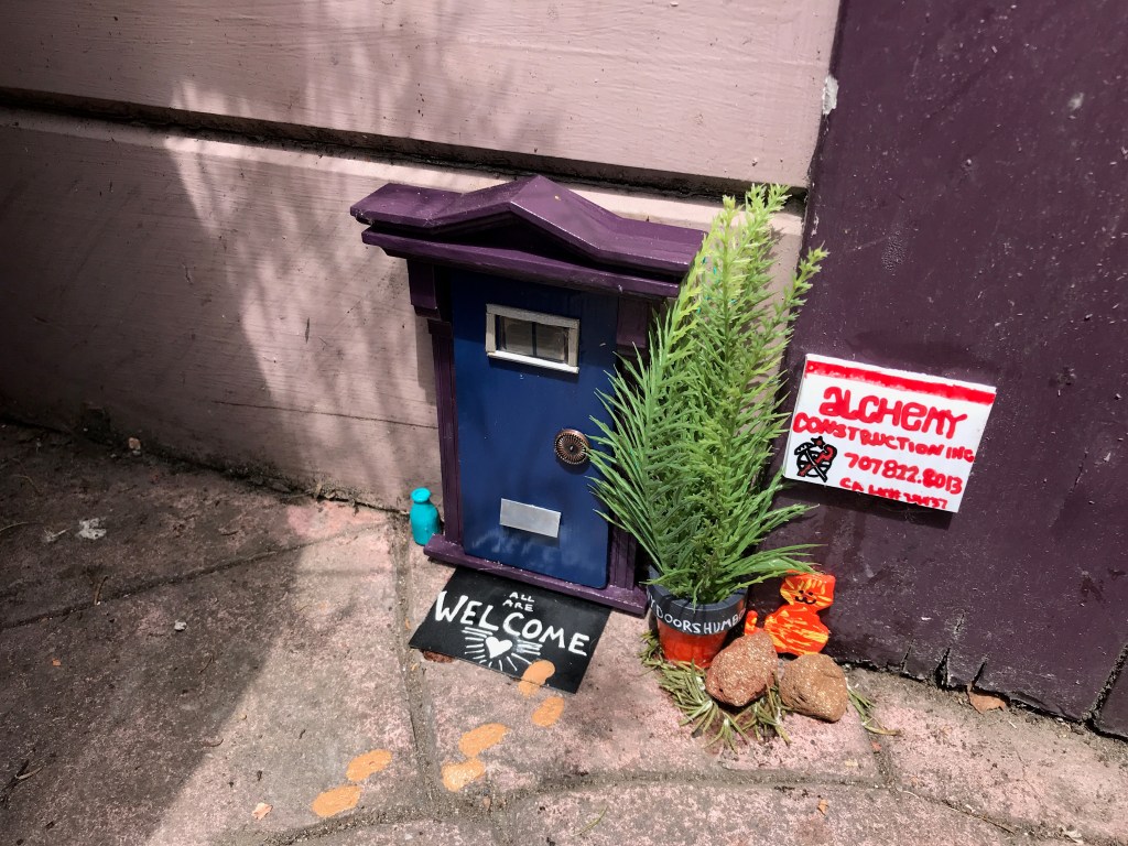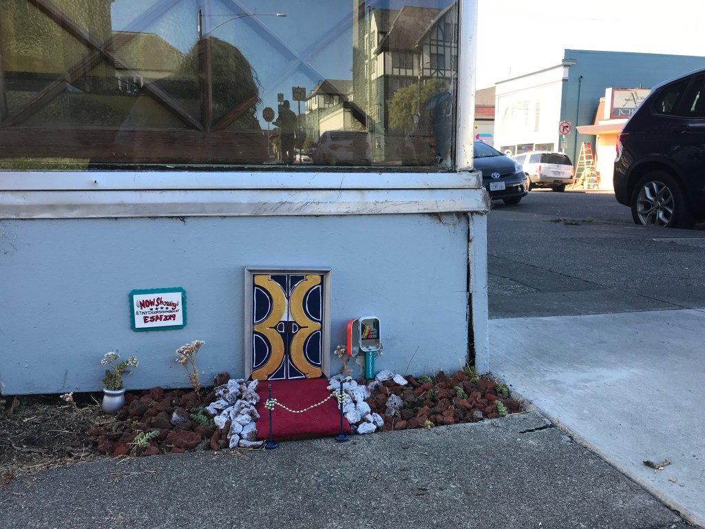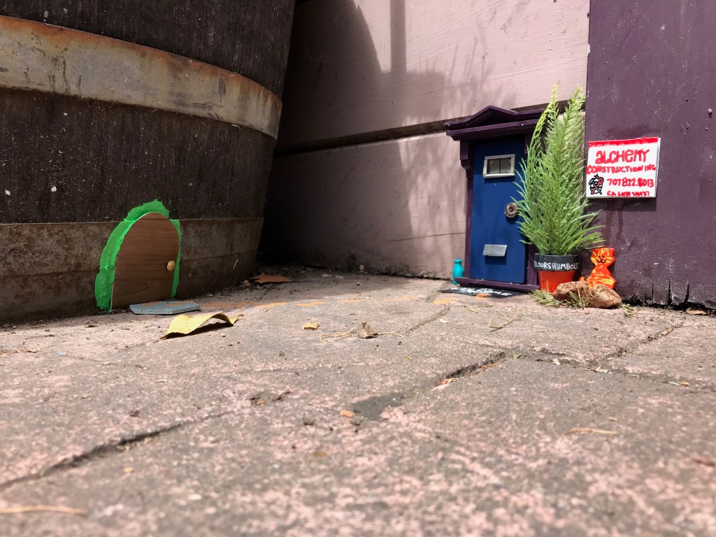 I was selected to participate in the 2019 Eureka Street Art Festival where I created 7 tiny door scenes from used materials. I was inspired by Atlanta’s Tiny Door Project. I included some process shots of laying out the materials, as well as the completed installations. If you want to explore and see what remains of them, here is a map and here is a nice little article about the project. The tiny doors stoon on their own, except for two. Dave Van Patten was kind enough to incorporate a tiny door into his Bigfoot Mural, and I created a custom round door for the En Masse Mural project (which I also helped lead).